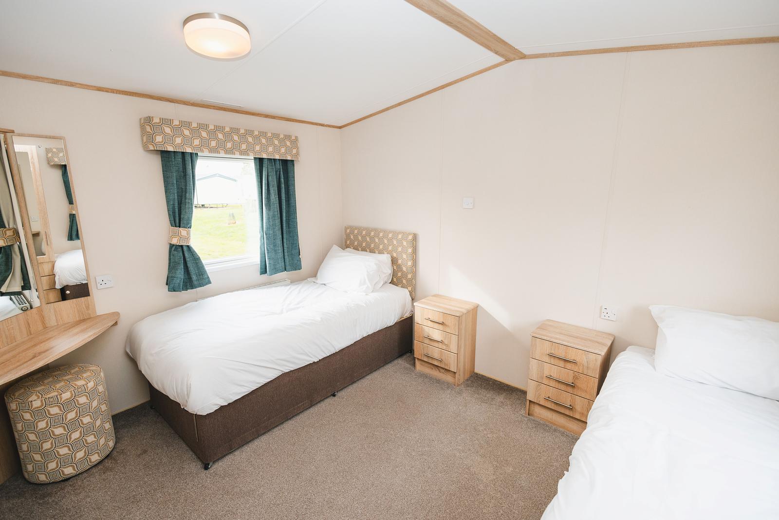 2 bedroom Platinum caravan. Sleeps up to four people with one double and one twin bedroom. Bed linen provided. Situated on the Hawthorns or Beech Grove area of the Resort.