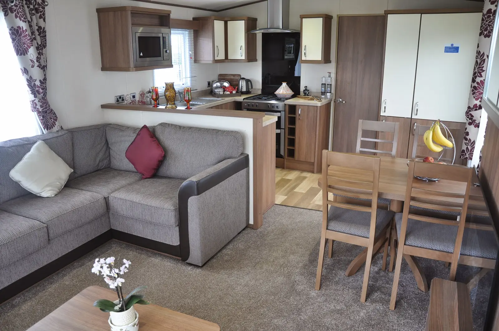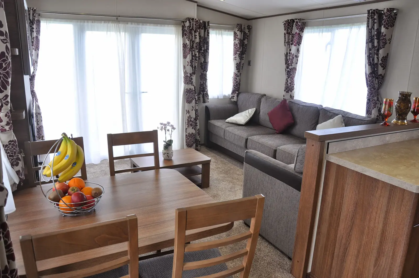 2 bedroom Gold caravan. Sleeps up to 6 people with one double and one twin bedroom with a pull out sofa in the front room. Ramp access and wetroom with handrails. Situated on the Hawthorns area of the resort.