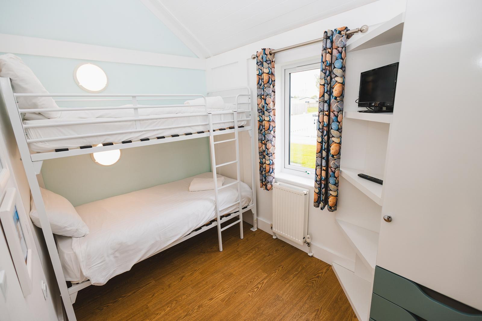 3 bedroom Lodge. Sleeps up to 6 people in one double and two twin bedrooms. Has patio doors and an outdoor decking area. Bed linen and towels provided.