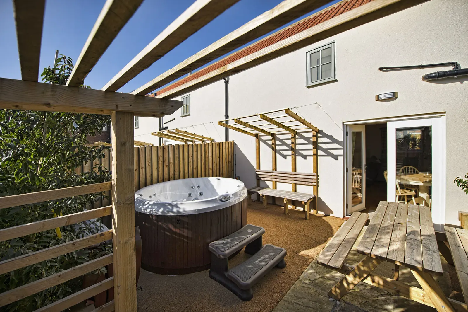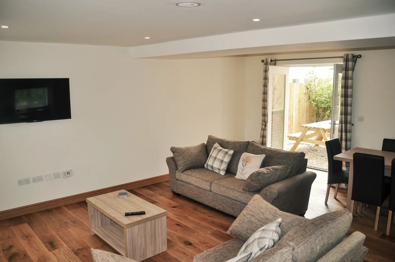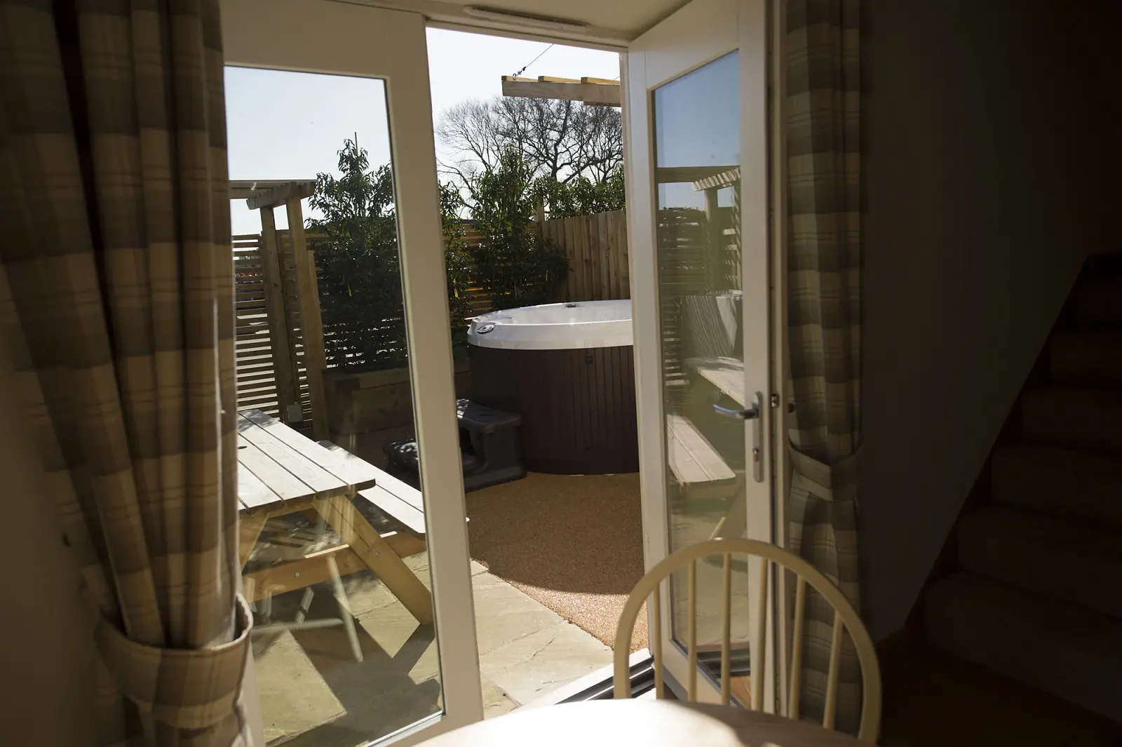 All four Riverside Cottages feature an open plan ground floor living area. This incorporates a contemporary lounge, dining area and kitchen that are fully furnished with all the latest conveniences including a chromecast flat screen television with integrated ceiling speakers. There’s access to a private patio too, that’s ideal for alfresco dining. And, to make your stay with us even more special, all Riverside Cottages now include the added luxury of a fantastic outdoor hot tub.